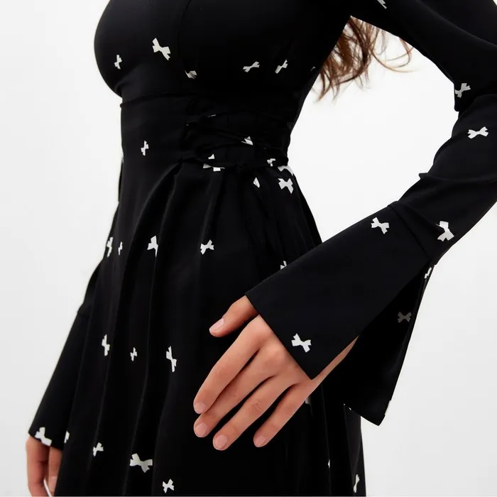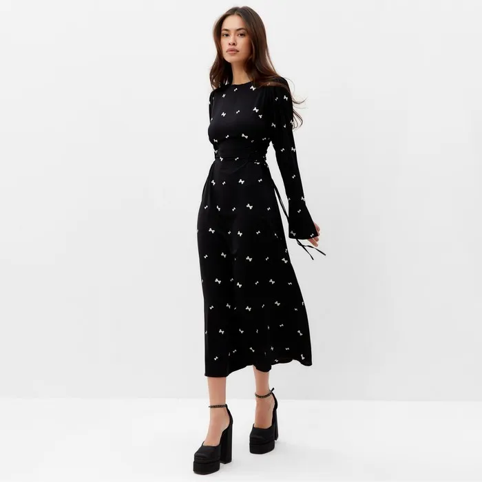 Платье женское с завязками на талии MIST Flower, размер 42, черный — Характеристики