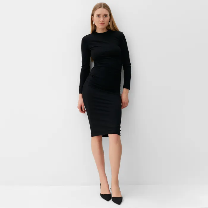 Платье женское со сборкой MINAKU: Casual Collection цвет черный ,р-р 42 — Характеристики