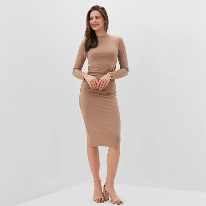 Платье женское со сборкой MINAKU: Casual Collection цвет тауп ,р-р 44 — Характеристики