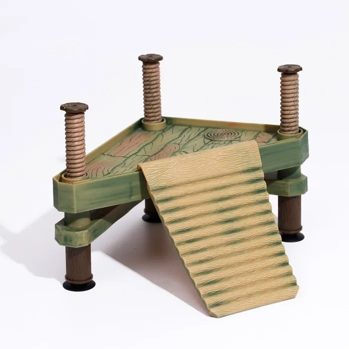 Главная особенность платформы — её универсальность и продуманный дизайн. Регулируемые опоры позволяют настраивать высоту, а плавающий мостик обеспечивает удобный доступ к суше и воде, имитируя естественные условия обитания. Конструкция из прочного пластика обеспечивает долговечность и надёжность, а коричневый цвет органично вписывается в любой интерьер террариума.