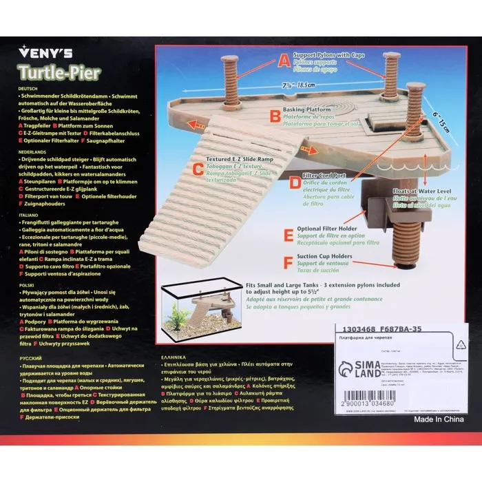 Платформа Veny's с плавающим мостиком — это идеальное решение для заботливых владельцев черепах, которые стремятся создать для своих питомцев комфортные и безопасные условия обитания. Подарите вашим черепашкам радость активного отдыха и уюта с этим продуманным и качественным аксессуаром!