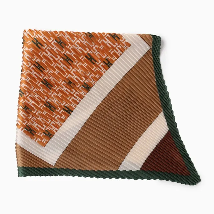 Платок плиссированный женский MINAKU, размер 70×70, коричневый, зелёный — Характеристики