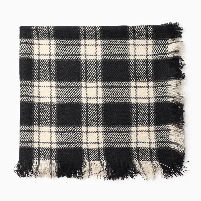 Платок женский, черный, принт клетка, размер 75×75 см