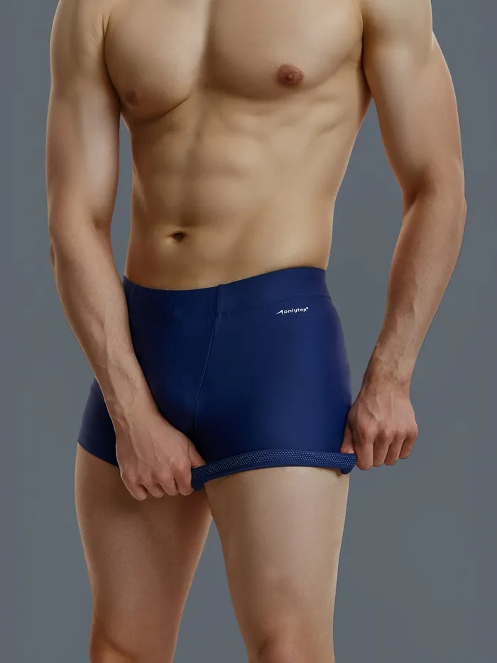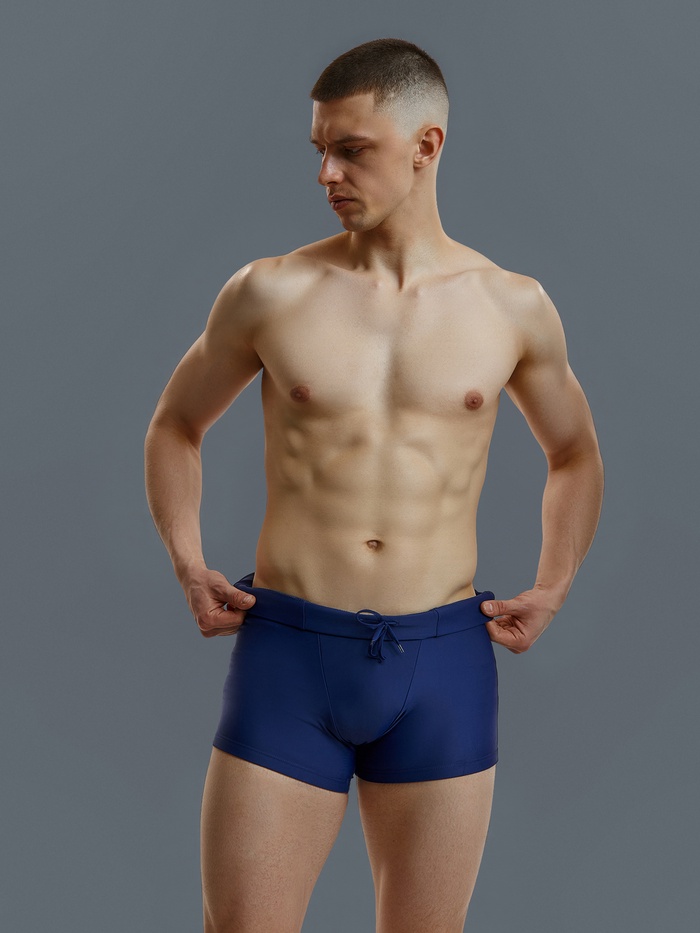 Спортивные мужские плавки-шорты тёмно-синего цвета. Незаменимый аксессуар для активного отдыха и плавания на протяжении всего года. Изготовлены из смеси полиэстера и эластана, эти шорты обладают высокой износостойкостью и эластичностью, обеспечивая комфорт и свободу движений.