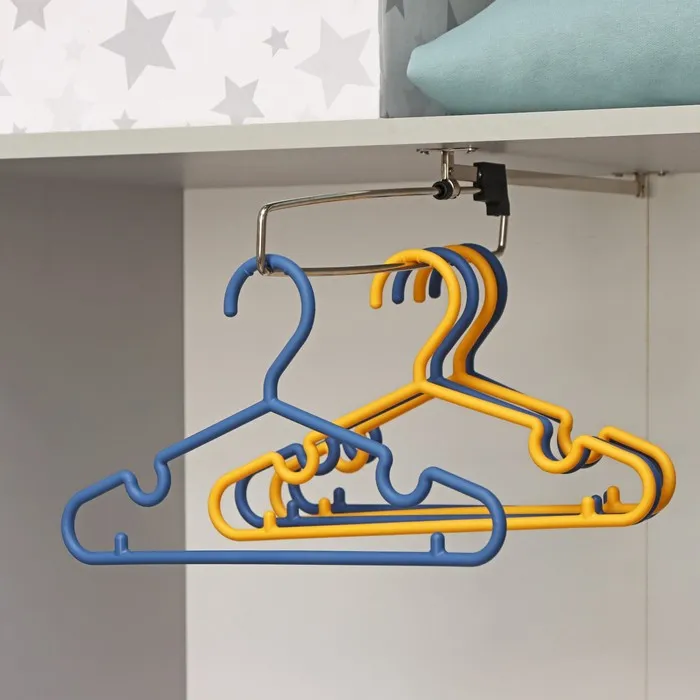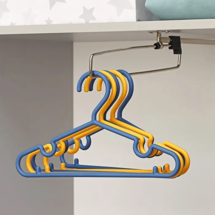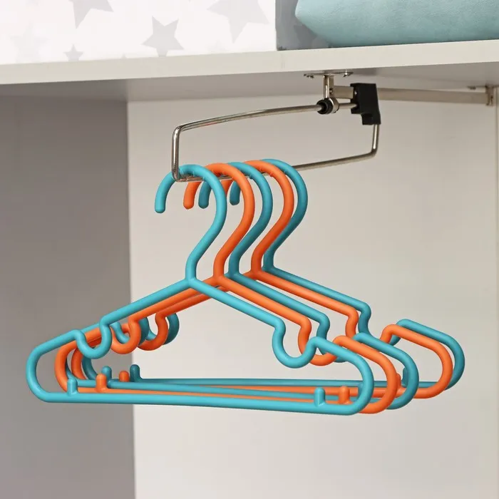 Вешалка – это компактное приспособление, которое позволит вам разместить в гардеробе классические штаны из лёгких или плотных материалов, блузки, рубашки, кофты и другие вещи. Изделие практичной формы занимает мало места, что позволяет экономить пространство в шкафу. Эргономичная форма поможет надёжно зафиксировать одежду и предотвратить её падение.