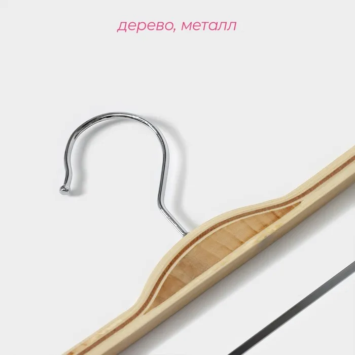Плечики - вешалка для брюк и юбок Доляна, 37×16 см, широкие плечики, с зажимами, светлое дерево — Характеристики