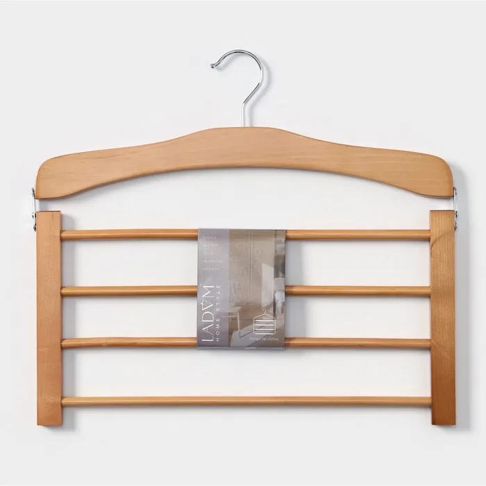 Плечики - вешалка для брюк и юбок LaDо́m Bois, 38.5×1.2×34.3 см, сорт А, многоуровневая, широкие плечики, дерево — Характеристики