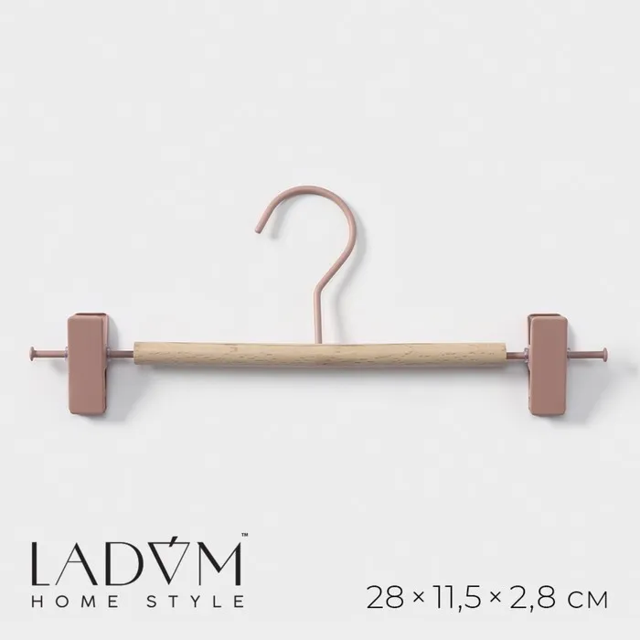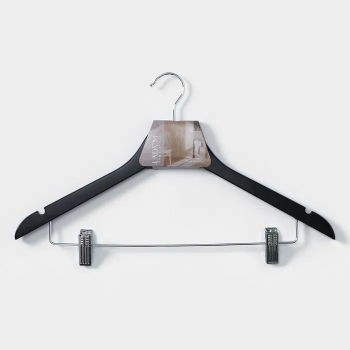 Плечики - вешалка для брюк и юбок LaDо́m Bois, 44.5×1.2×27.5 см, с зажимами, широкие плечики, сорт А, дерево — Характеристики