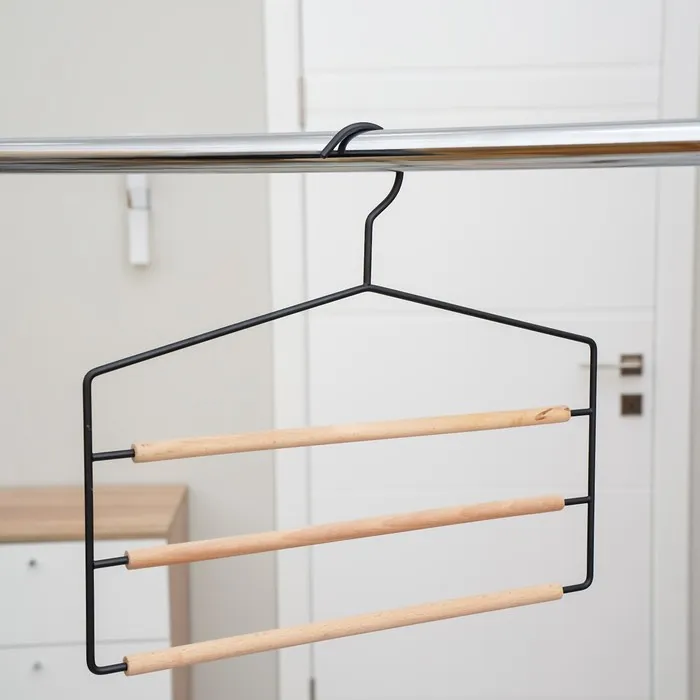 Вешалка для брюк – это компактное приспособление, которое позволит разместить в гардеробе классические штаны из лёгких или плотных материалов. Изделие практичной формы занимает мало места, что позволяет экономить пространство в шкафу.