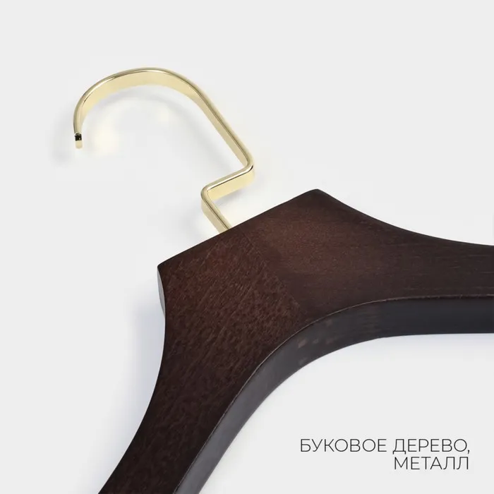 Плечики - вешалка для костюмов LaDо́m Brown Gold, 40.5×2.7×29 см, с зажимами, широкие плечики, дерево бук — Характеристики