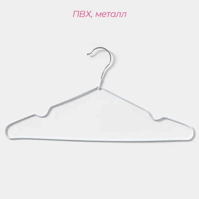 Вешалка-плечики с антискользящим ПВХ покрытием – незаменимая вещь в каждом шкафу. Специальное покрытие вешалки не даёт одежде соскальзывать. Классическая форма с перекладиной для брюк и выемкой для одежды с бретельками позволяет использовать вешалку практически для любой одежды. Тонкие металлические плечики не займут много места в вашем шкафу и помогут разместить всю одежду.