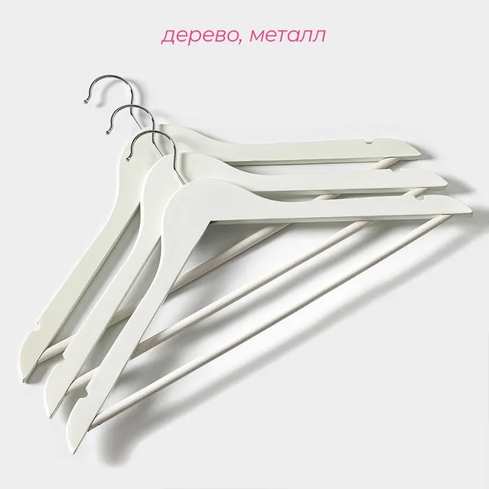 Плечики - вешалки для одежды Доляна, 44.5×23 см, 3 шт., с перекладиной, сорт B, дерево клён, белые — Характеристики