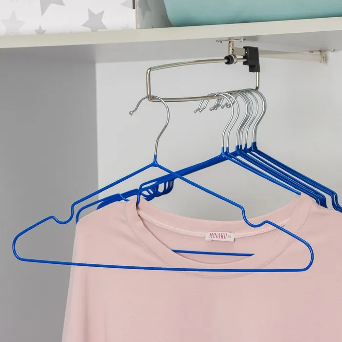 Вешалка-плечики с антискользящим покрытием – незаменимая вещь в каждом шкафу. Специальное покрытие вешалки не даёт одежде соскальзывать. Классическая форма с перекладиной для брюк и выемкой для одежды с бретельками позволяет использовать вешалку практически для любой одежды. Тонкие металлические плечики не займут много места в вашем шкафу и помогут разместить всю одежду.