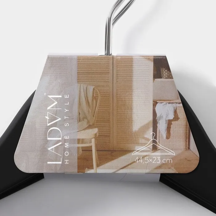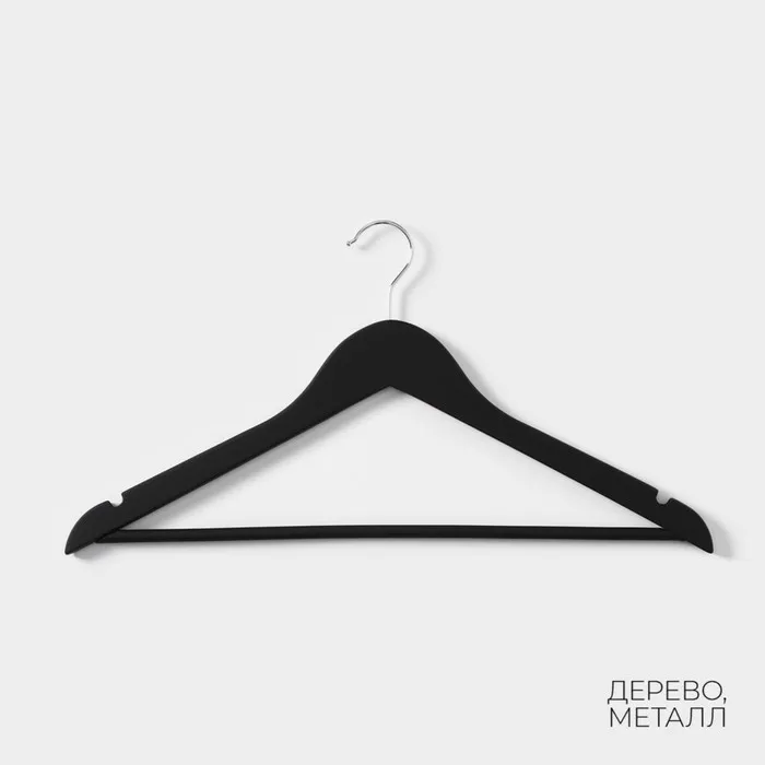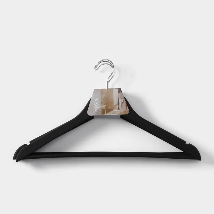 Плечики - вешалки для одежды LaDо́m Soft-Touch, 44,5×1,2×23 см, 3 шт, деревянные, с перекладиной, широкие плечики, цвет чёрный — Характеристики
