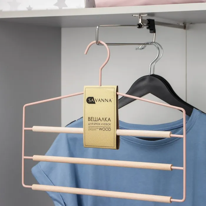 Плечики - вешалки многогуровневые для брюк и юбок SAVANNA Wood, 3 перекладины, 37×32×1.1 см, розовые — Характеристики
