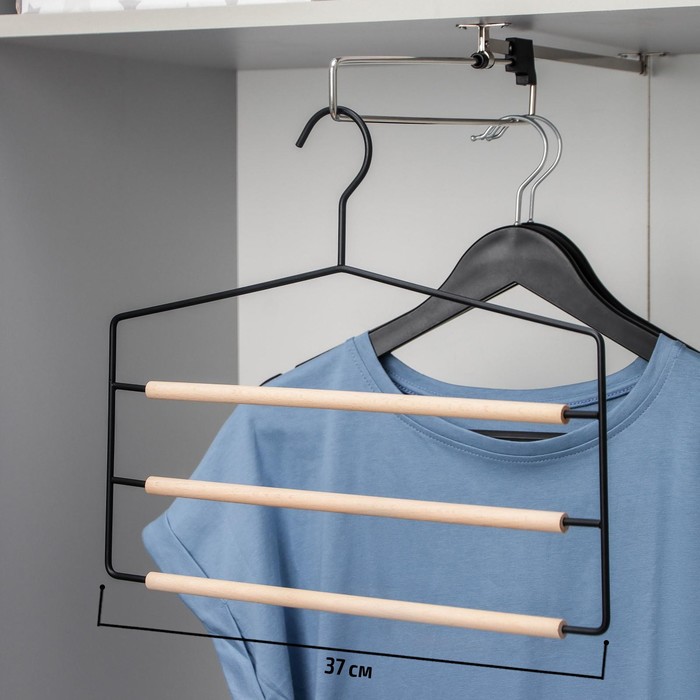 Плечики - вешалки многоуровневые для брюк и юбок SAVANNA Wood, 3 перекладины, 37×32×1.1 см, чёрные — Характеристики
