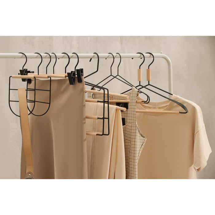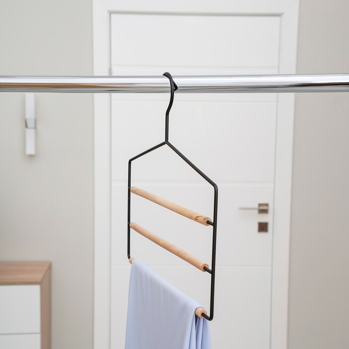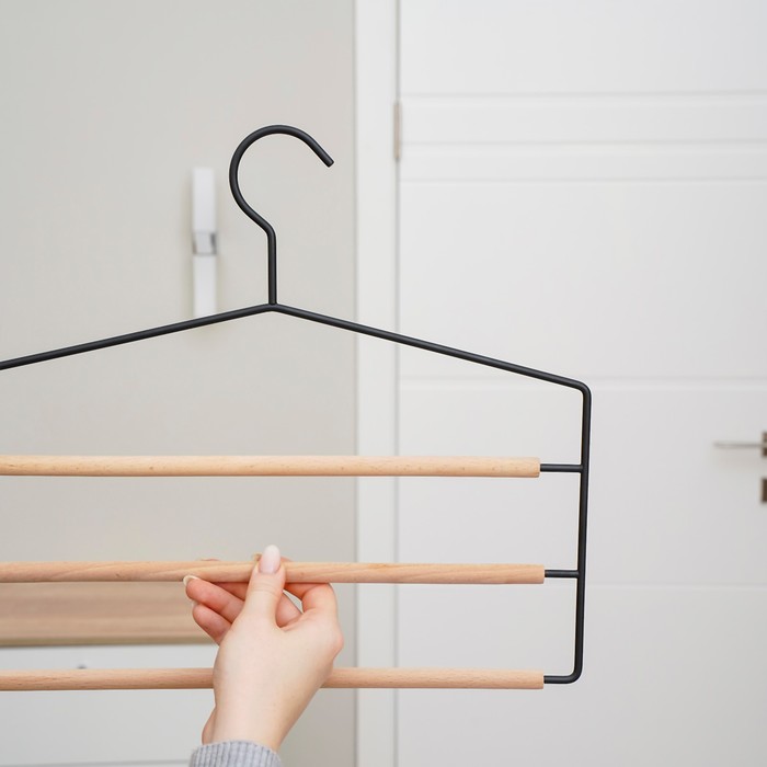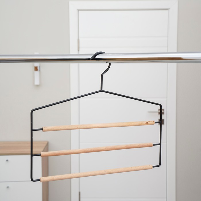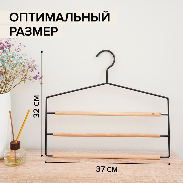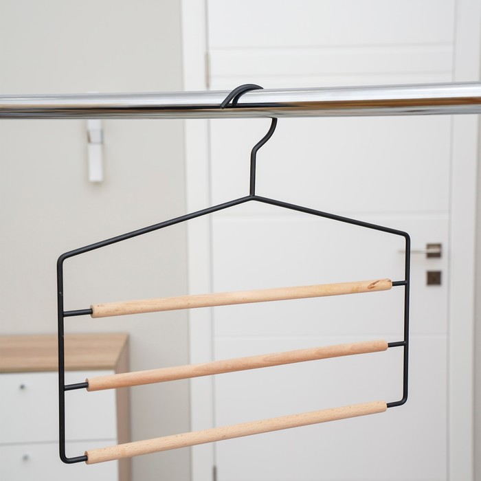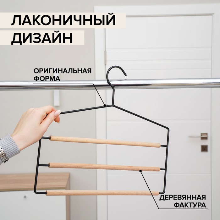 Плечики - вешалки многоуровневые для брюк и юбок SAVANNA Wood, 3 перекладины, 37×32×1.1 см, чёрные