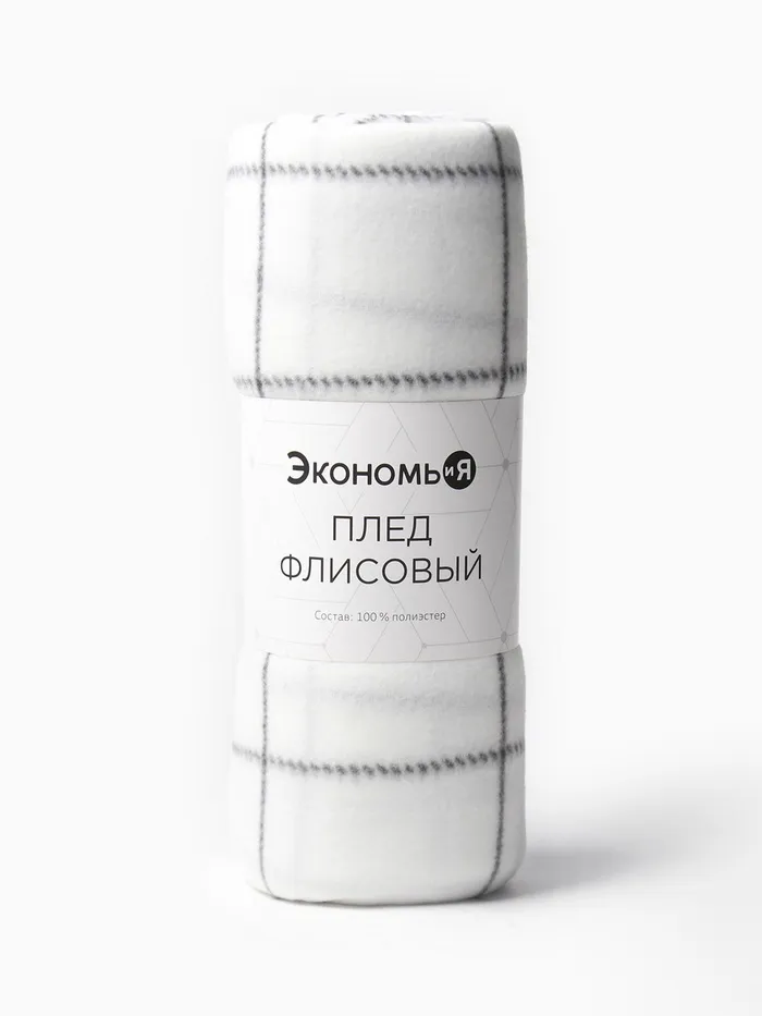 Плед Экономь и Я "Клетка" цв.белый, 150*130 см, пл.160 г/м2, 100% п/э, флис — Характеристики