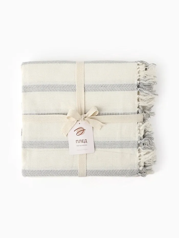 Плед «Этель» Milky stripe, 150×220 см, молочный, хлопок 100% — Характеристики