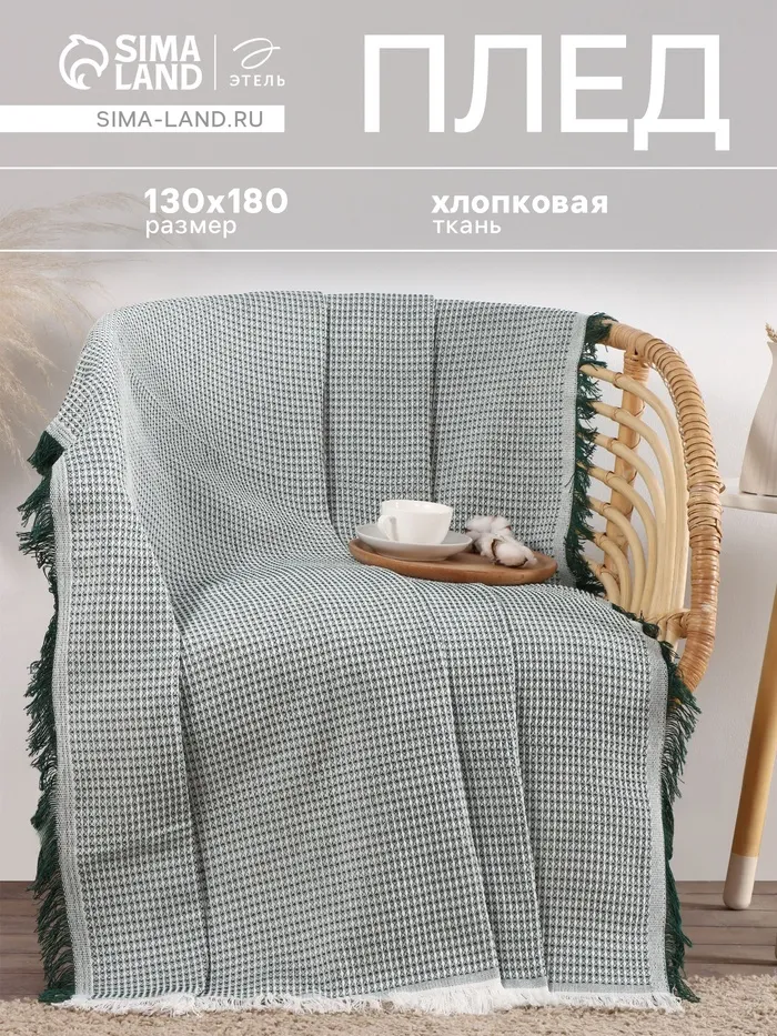 Плед «Этель. Вафля», 130×180 см, 80% хлопок, 20% п/э, зелёный — Характеристики
