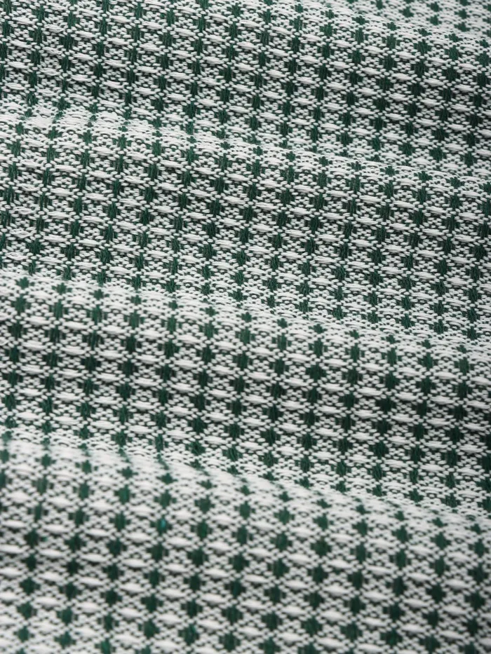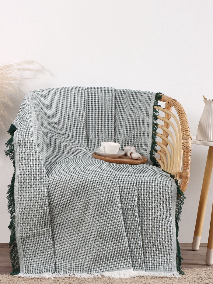 Зелёный хлопковый плед с текстурой вафли размером 130×180 см сочетает натуральные материалы и практичный дизайн. Лёгкий и уютный, он станет универсальным дополнением для односпальной кровати или зоны отдыха.