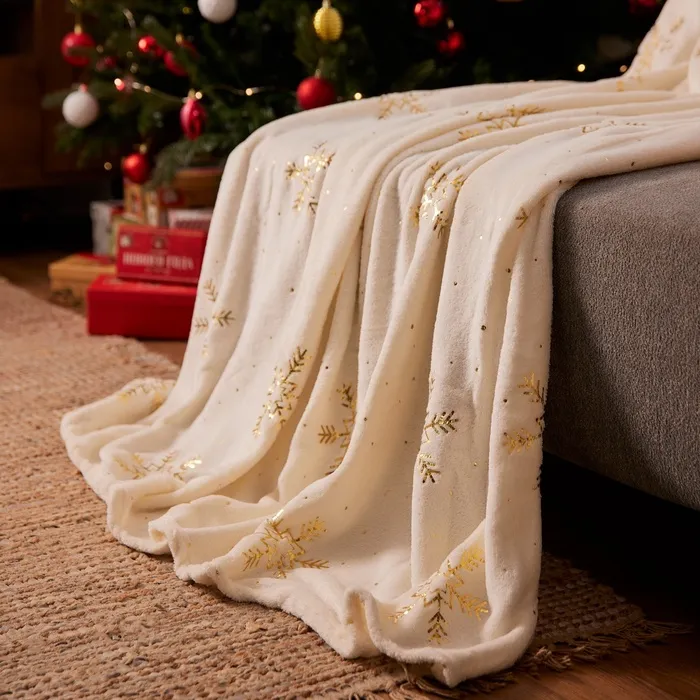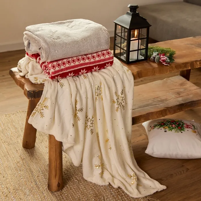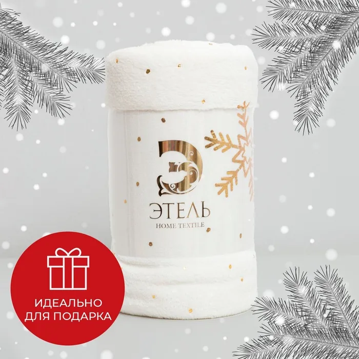 Плед "Этель" «Золотые снежинки», белый, 150х200 см, корал-флис — Характеристики