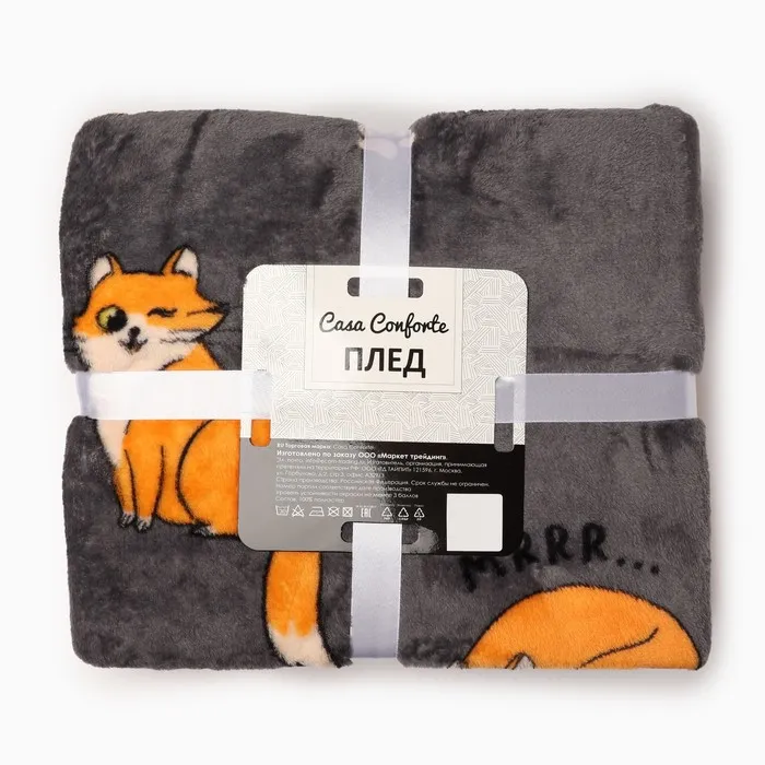 Плед Festeval Red Cat 150х200см, серый, микрофибра 190г/м, пэ100% — Характеристики