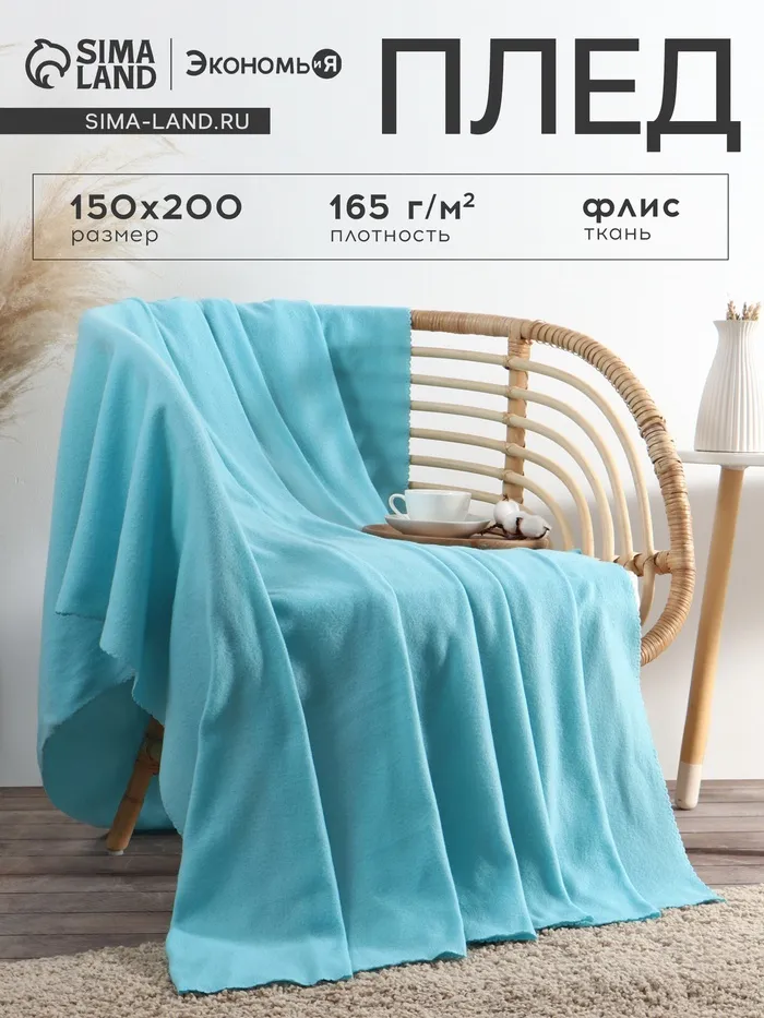 Плед флисовый «Экономь и Я», 150×200 см, 160 г/м², голубой — Характеристики