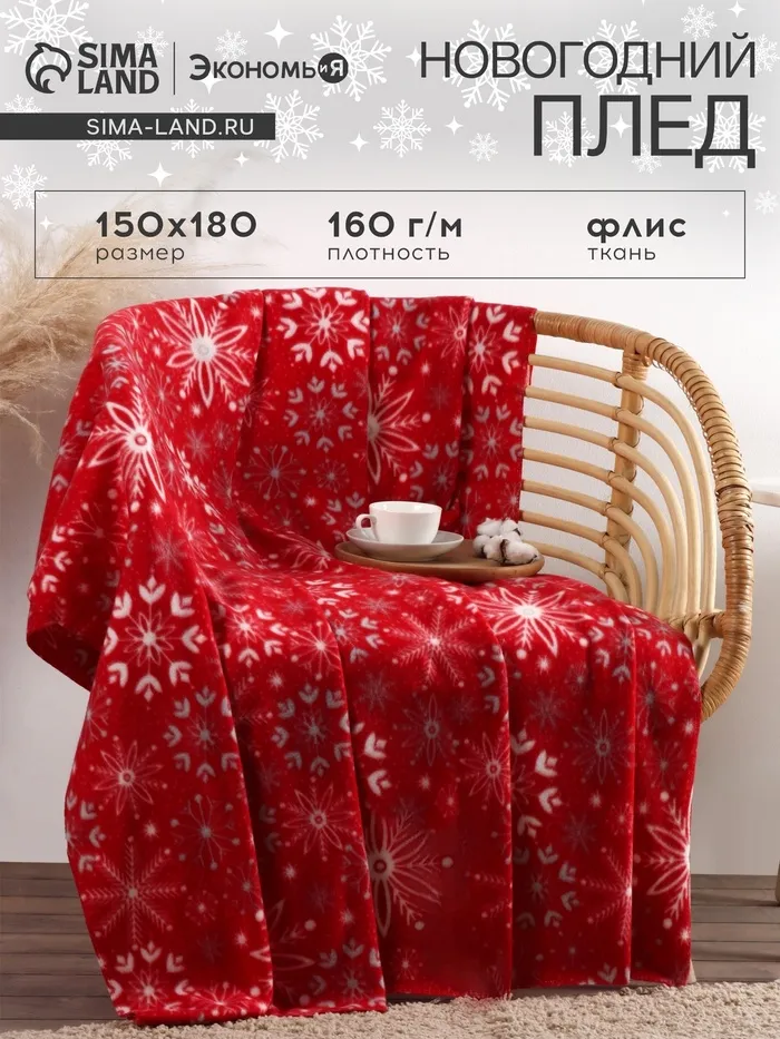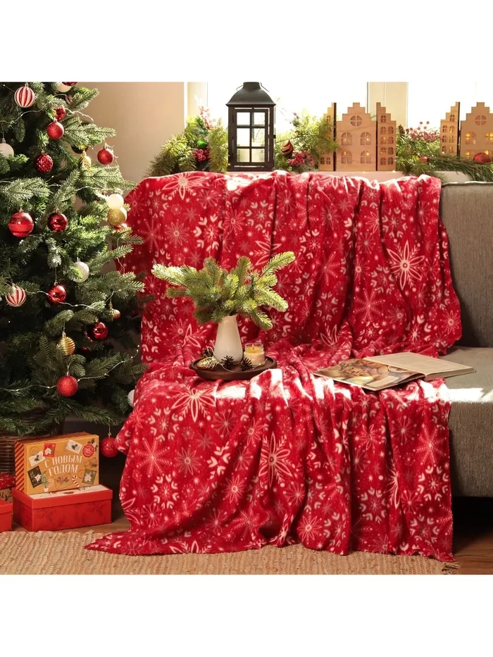 Теплый новогодний плед с зимним узором станет вашим идеальным спутником в холодное время года. Размер 150×180 см позволяет укутаться в него вдвоём или использовать как уютное покрывало на диване. Яркий красный цвет с изображением снежинок создаёт праздничное настроение и добавляет уют в ваш дом, делая его отличным дополнением к новогоднему декору.