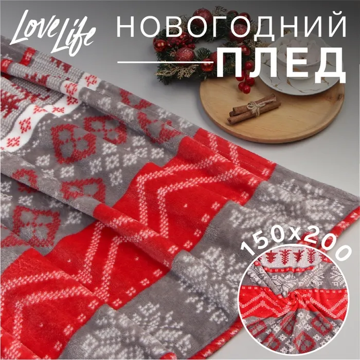 Плед LoveLife «Новогодний узор» 180х200 см,100% п/э, велсофт 280 гр/м2 — Характеристики