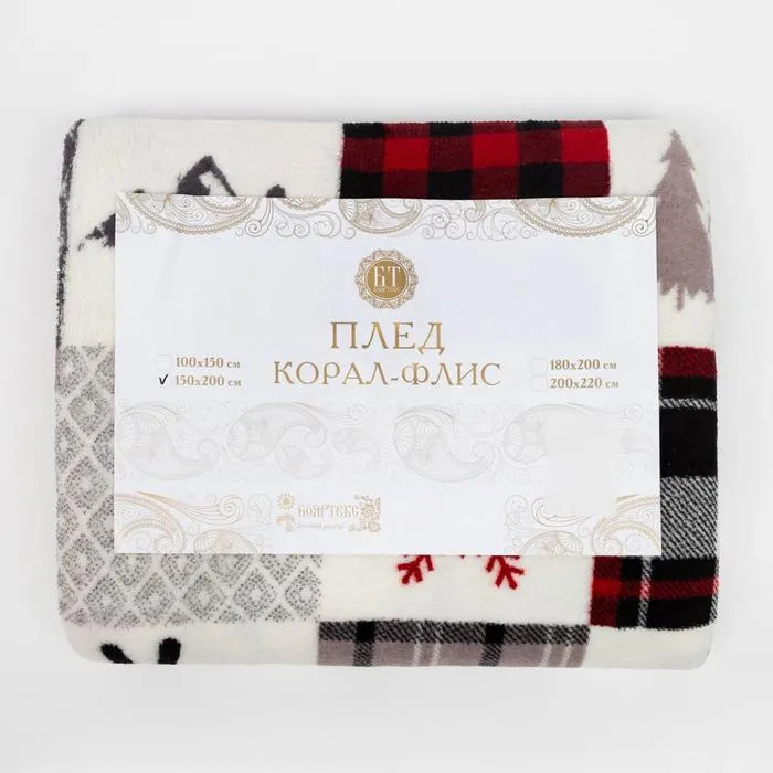 Плед новогодний 100х150см, корал-флис, 165г/м² — Характеристики
