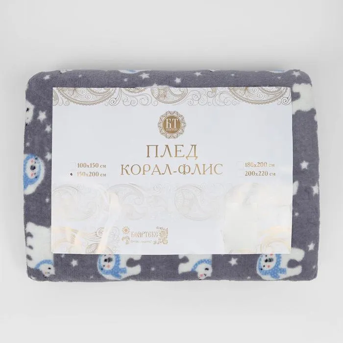 Плед новогодний 100х150см, цвет серый, корал-флис, 165г/м² — Характеристики
