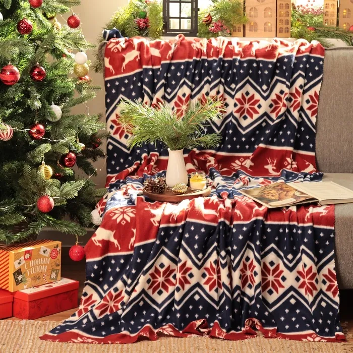 Плед новогодний Экономь и Я «Олени» 150*200см, пл.160 г/м2, 100% п/э — Характеристики