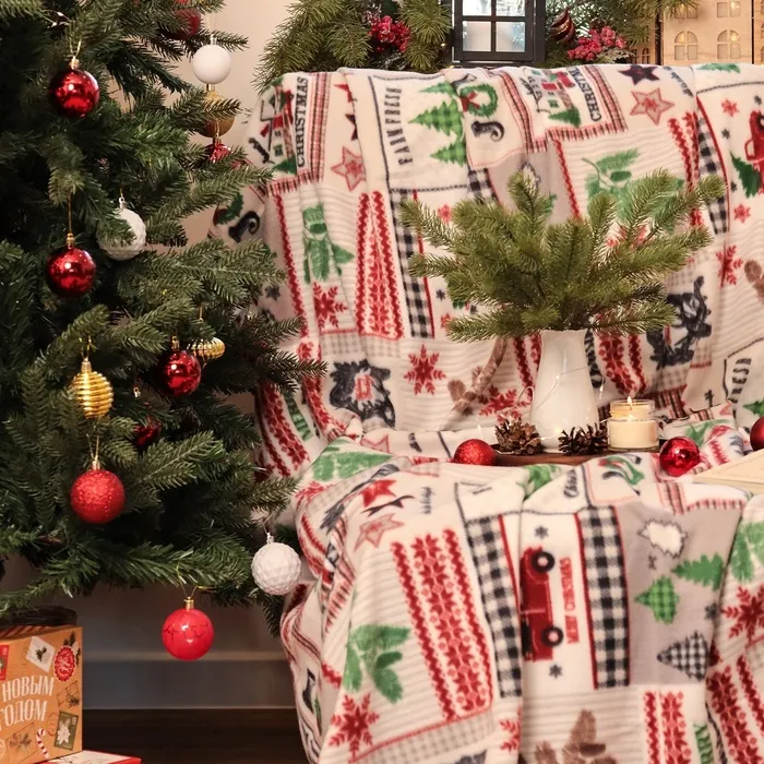Плед новогодний Экономь и Я «Рождество» 150*200см, пл.160 г/м2, 100% п/э — Характеристики