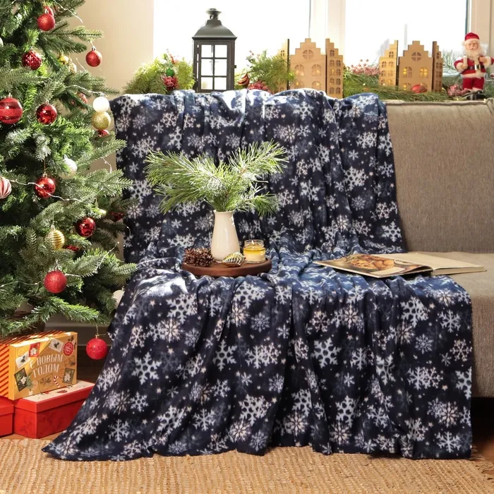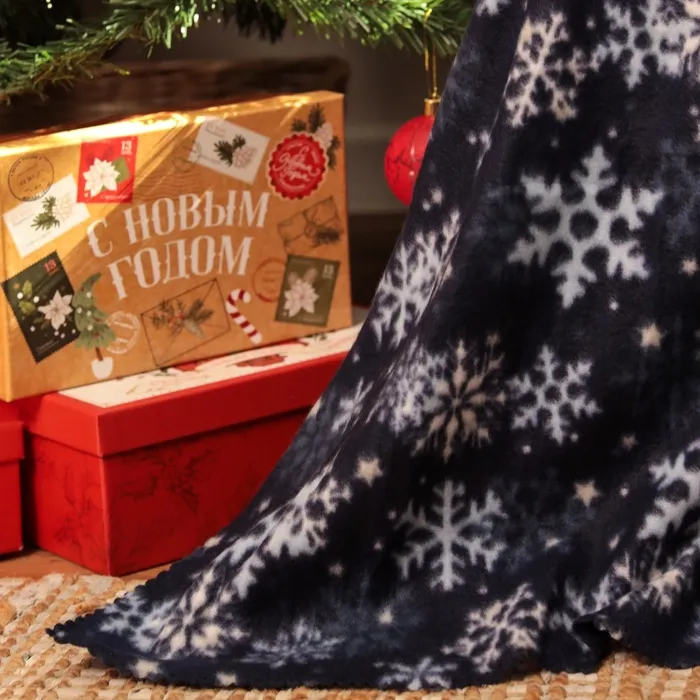 Плед новогодний Экономь и Я "Снегопад" 150*180см, пл.160 г/м2, 100% п/э — Характеристики
