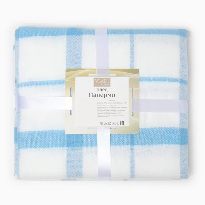 Плед Palermo 140х200см, 15S/SOUL, коб/белый/коб, шерсть 20%, пан 40%, пэ 40% — Характеристики