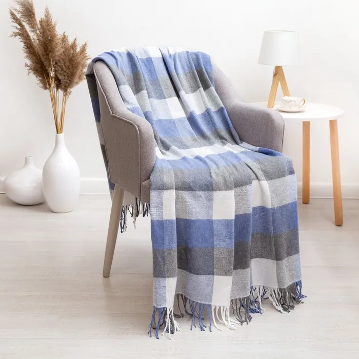 Плед Пикник 140х200 см, белый-синий-серый, хлопок 20%, пан 40%, полиэстер 40% — Характеристики