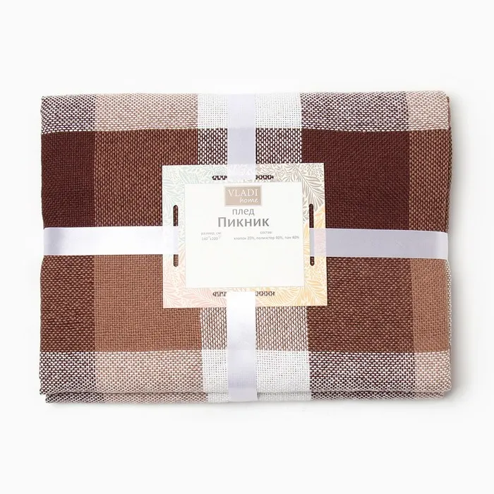 Плед Пикник 140х200см, белый/бежевый/коричневый, хлопок 20%, пан 40%, полиэстер 40% — Характеристики