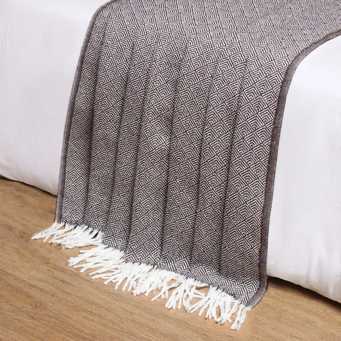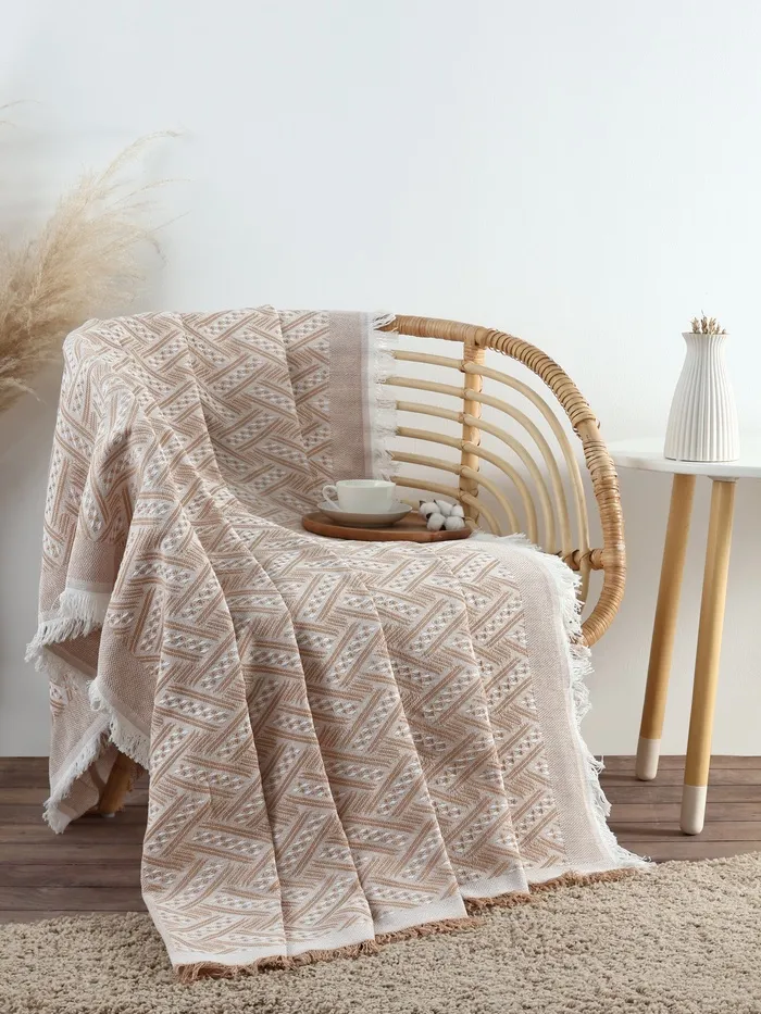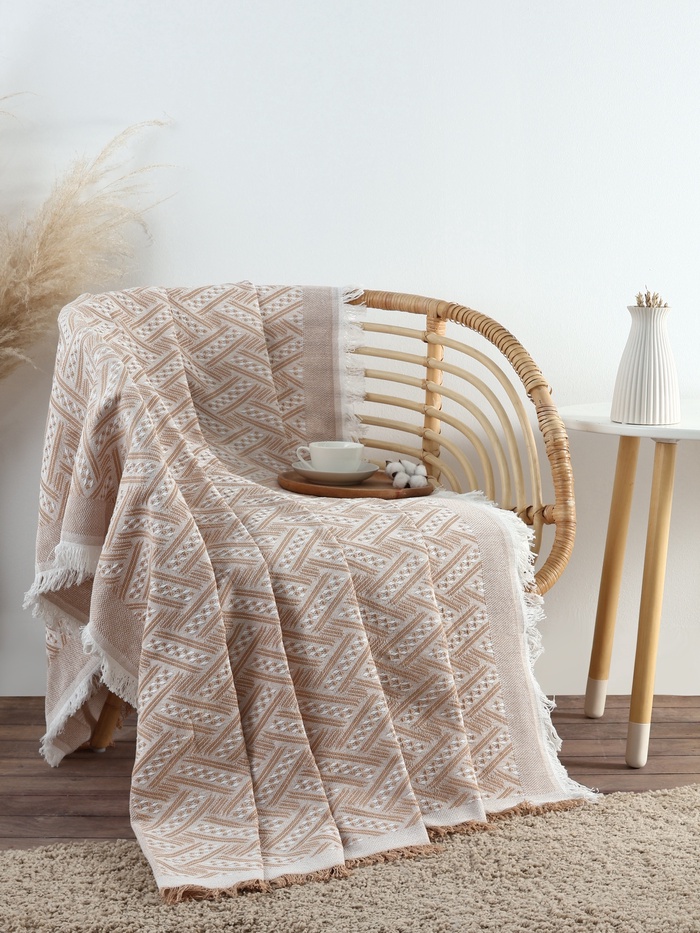 Плед с бахромой «Этель» Home, 130×180 см, бежевый, жаккард — Характеристики