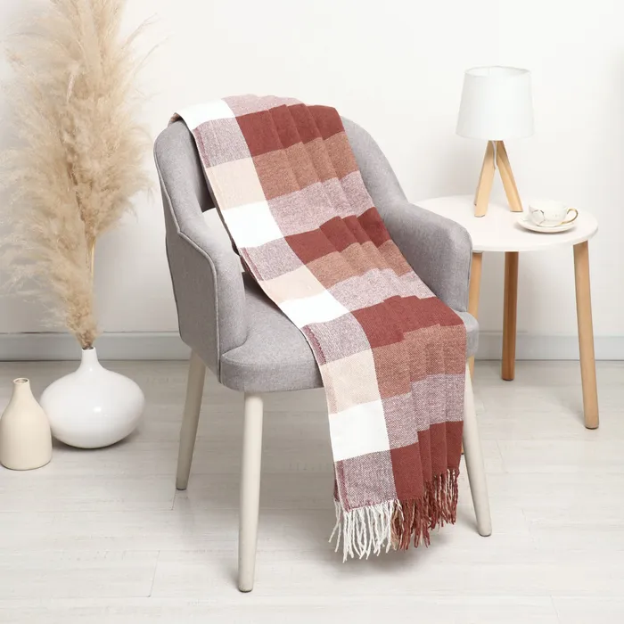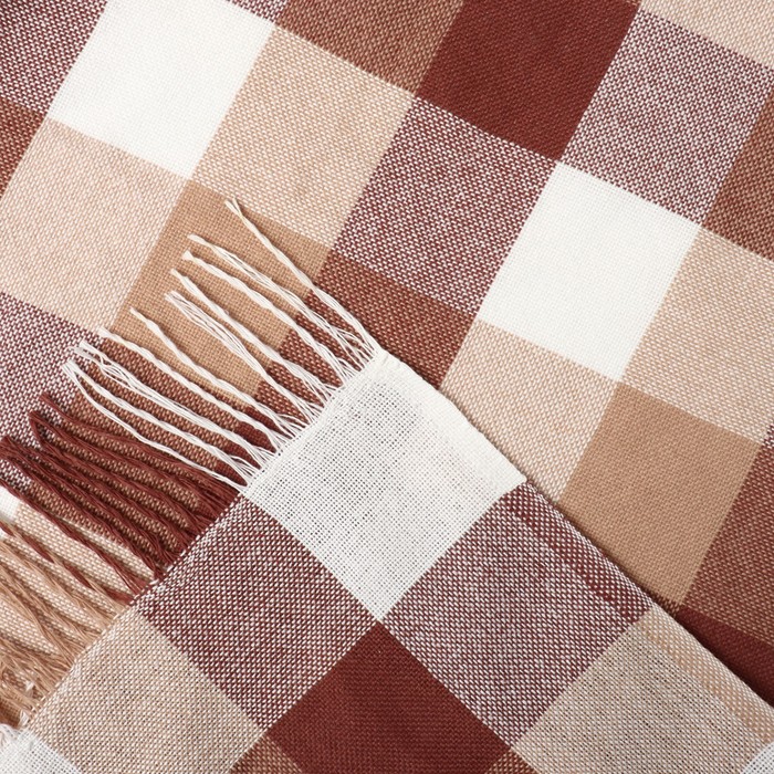 Плед с бахромой Vladi «Пикник», 140×200 см, белый, бежевый, коричневый — Характеристики