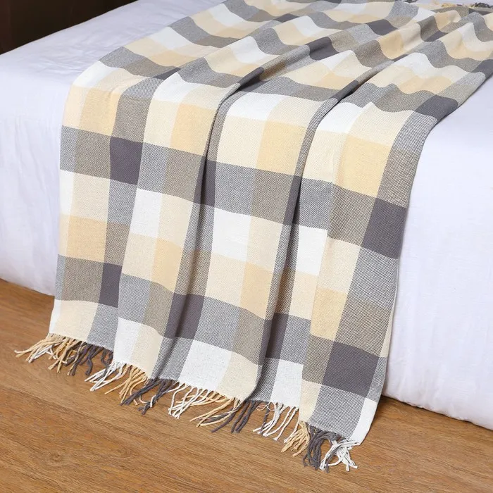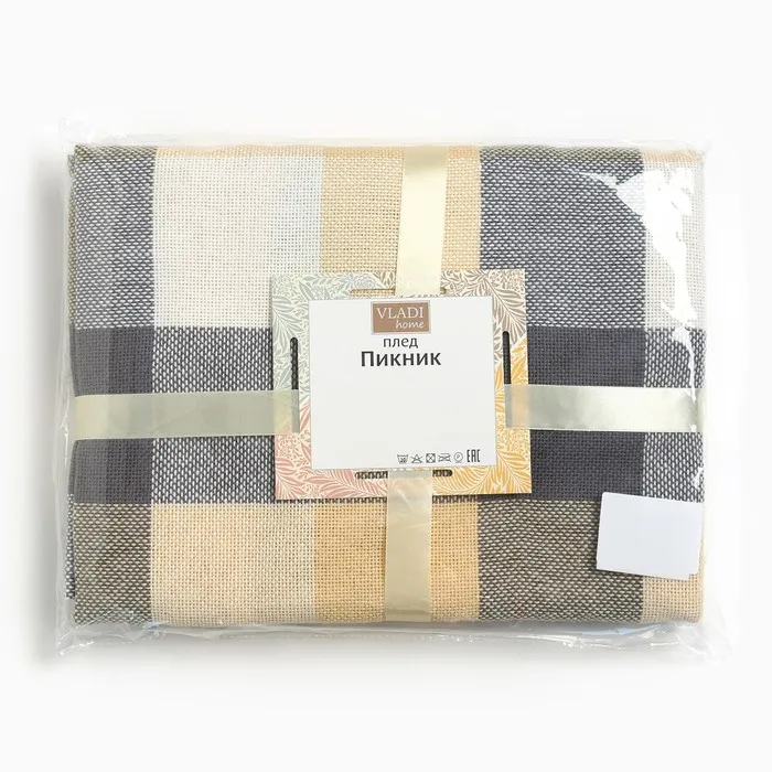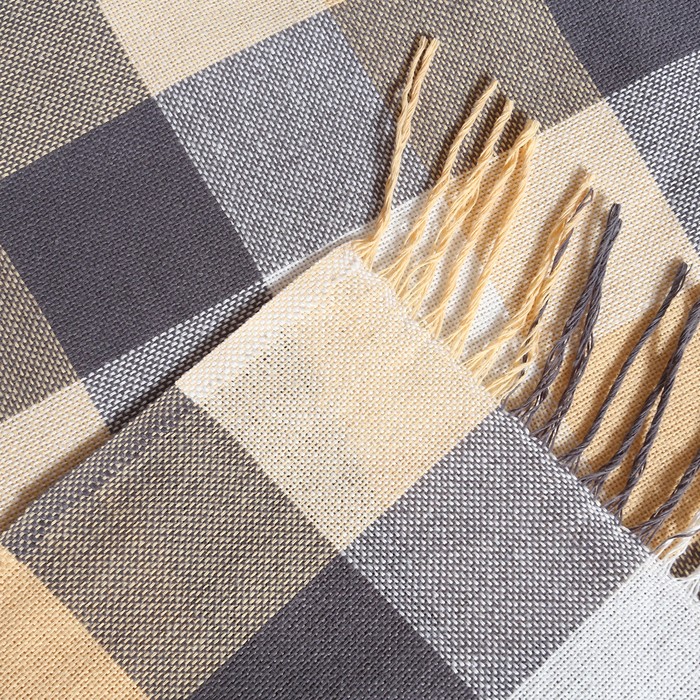 Плед с бахромой Vladi «Пикник», 170×210 см, белый, жёлтый, серый — Характеристики