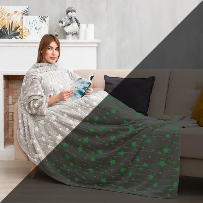 - Удобный крой с рукавами для активного отдыха под пледом.