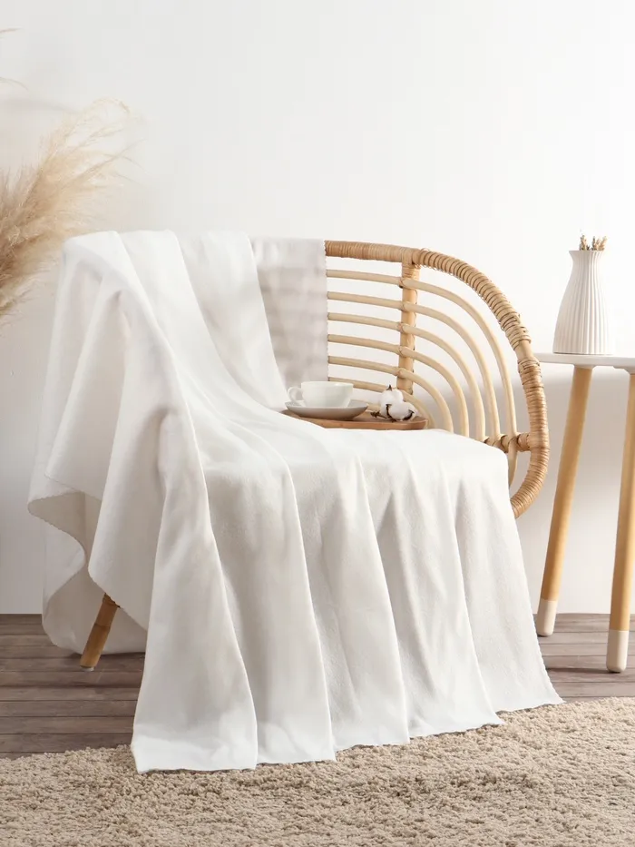 Плед сохраняет форму и цвет после множества стирок. Для ухода достаточно деликатного режима при 40 °C. Отбеливать не требуется. Сушить можно в барабане на низких оборотах — материал быстро высыхает и остаётся таким же мягким. Это решение для тех, кто ценит время и комфорт без лишних хлопот.
