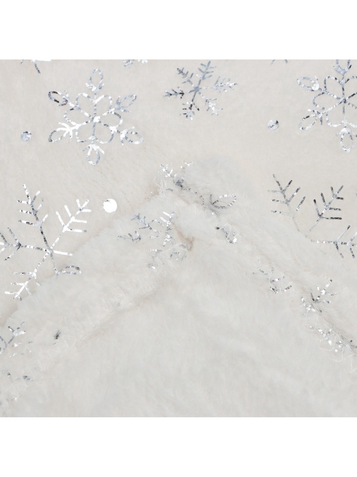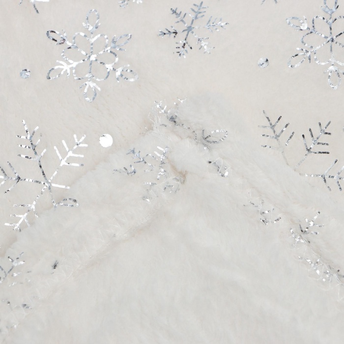 - Снежно-белый цвет и узор из серебристых снежинок создают новогоднее настроение.