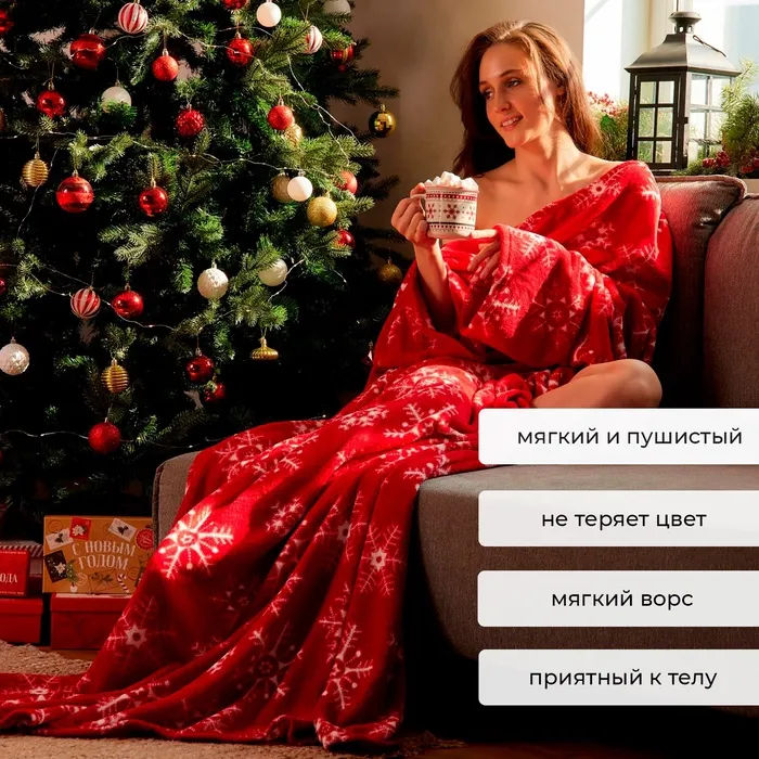 Уютный плед с рукавами станет вашим незаменимым спутником в зимние вечера. Красный цвет придаёт ему праздничный вид, идеально подходящий для новогодних праздников. Размер 150×200 см позволяет удобно устроиться на диване или кресле, а рукава обеспечивают свободу движений, позволяя вам наслаждаться теплом, не ограничивая активность. Изготовленный из ворсистого корал-флиса, этот плед мягко окутывает вас, создавая ощущение комфорта и уюта.