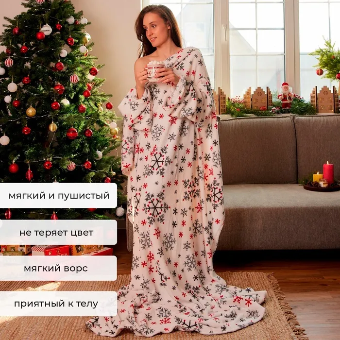 Плед с рукавами "Этель" "Снежинки" (вид2) 150*200 см,100% п/э, корал-флис 220 гр/м2 — Характеристики