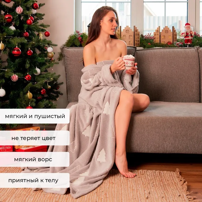 Плед с рукавами светящийся в темноте "Этель" "Елочки" 150*200, 100% п/э 220 гр/м2 — Характеристики