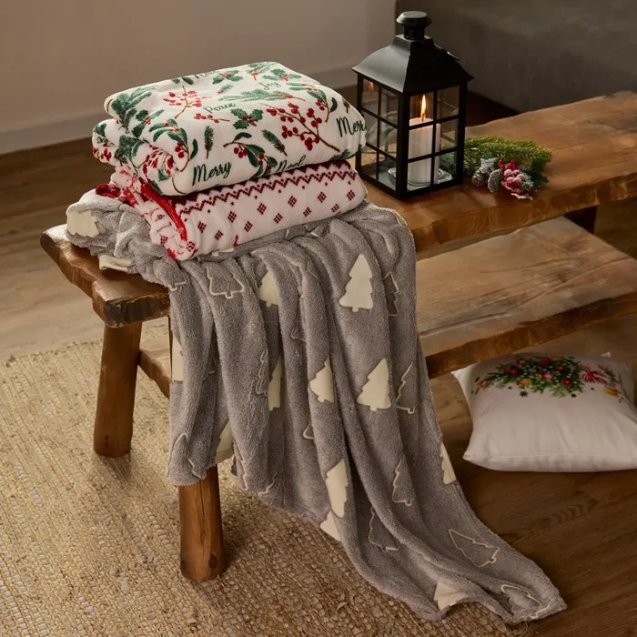 Плед светящийся в темноте "Этель" "Елочки" 150*200 см,100% п/э, корал-флис 220 гр/м2 — Характеристики