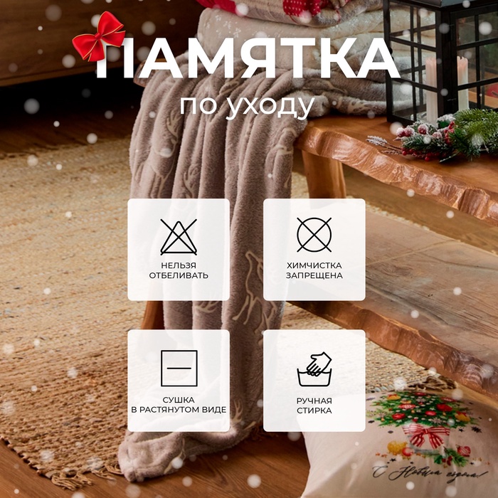 Плед светящийся в темноте "Этель" "Олени" 150*200 см,100% п/э, корал-флис 220 гр/м2 — Характеристики