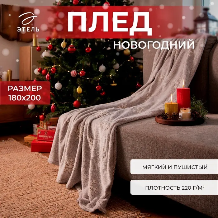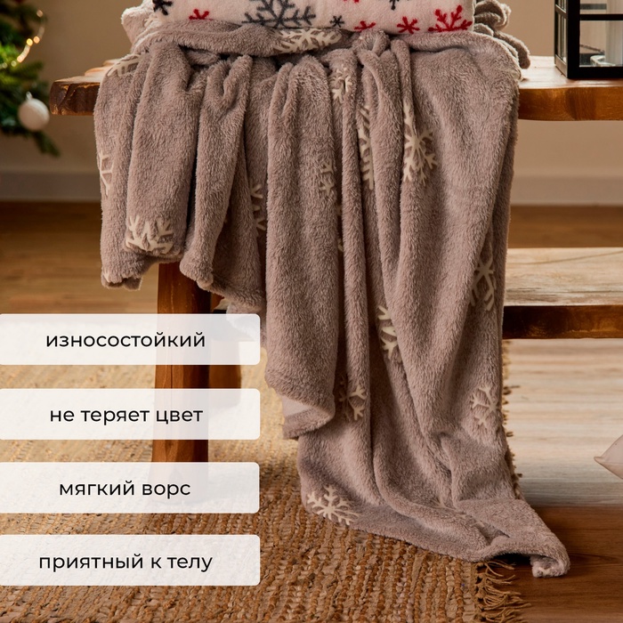 Плед светящийся в темноте "Этель" "Снежинки" 180*200 см,100% п/э, корал-флис, 220 гр/м2 — Характеристики